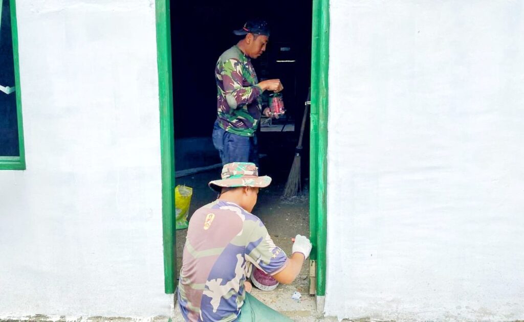 Para personel Satgas TMMD terlihat bekerja dengan penuh semangat menyelesaikan berbagai pekerjaan akhir seperti perapian bagian dalam rumah, pengecekan struktur bangunan, hingga memastikan setiap bagian rumah siap digunakan oleh pemiliknya.